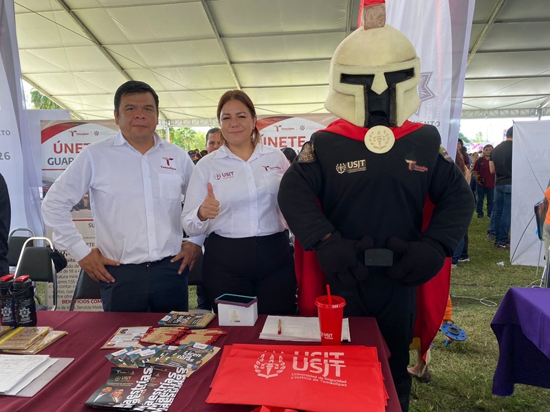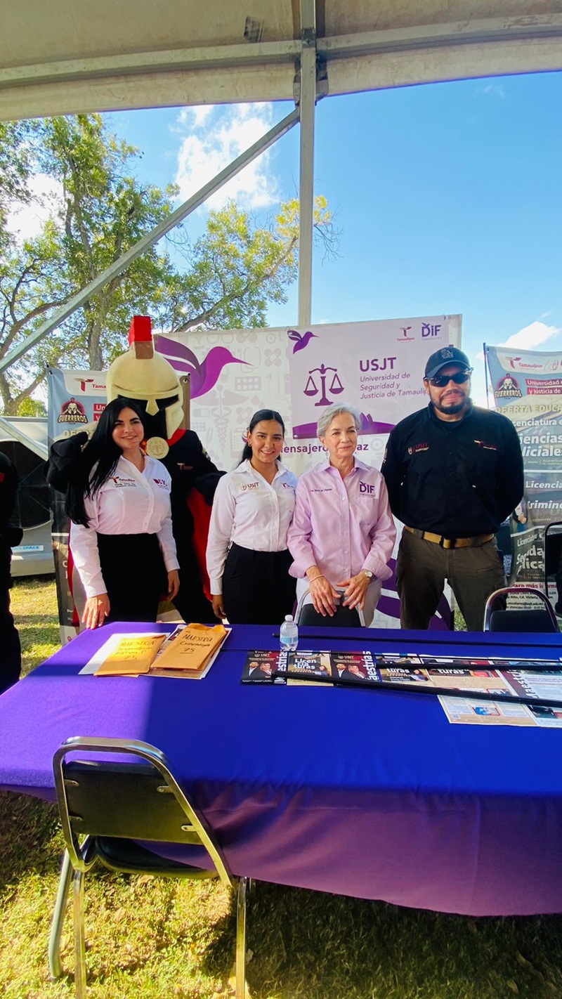 CIUDAD VICTORIA, TAMPS. Con un módulo de información y entrega de folletos personalizada para promocionar la oferta educativa, la Universidad de Seguridad y Justicia de Tamaulipas participa activamente en las brigadas del Sistema DIF Tamaulipas denominadas «Transformando Familias», convocadas por la presidenta del organismo, la doctora María Santiago de Villarreal.
