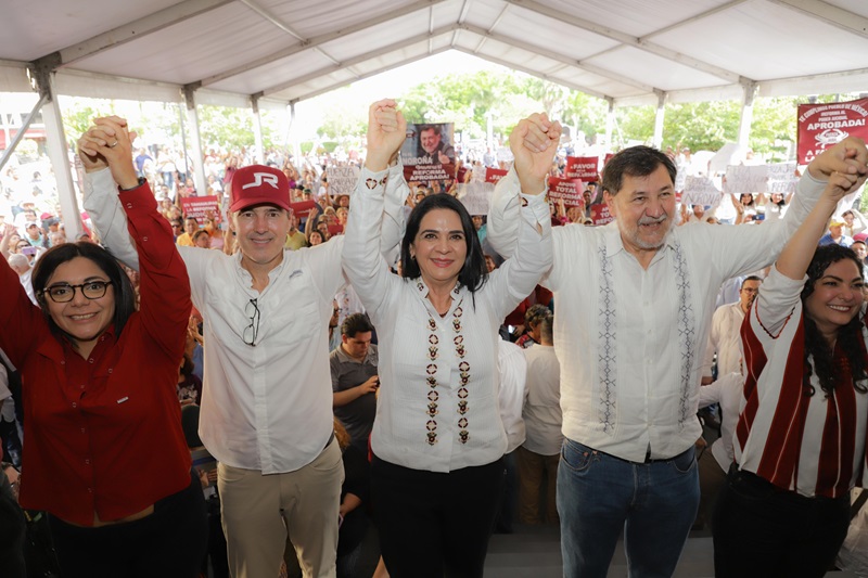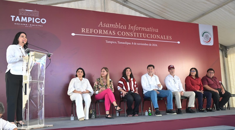 TAMPICO, TAMPS. Al participar en la Asamblea Informativa sobre las Reformas Constitucionales, ofrecida por el Presidente de la Mesa Directiva del Senado de la República, Gerardo Fernández Noroña en la Plaza Hijas de Tampico, la Presidenta municipal Mónica Zacil Villarreal Anaya destacó la importancia de los cambios constitucionales en la vida democrática del país; así como la presentación y explicación detallada al pueblo de México, sobre la relevancia de estos cambios.