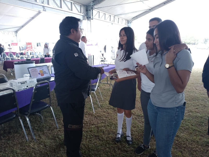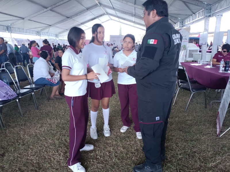 CRUILLAS, TAMPS. Durante la brigada del Sistema DIF Tamaulipas, “Transformando Familias”, celebrada en la Unidad Deportiva del municipio de Cruillas, personal de la Guardia Estatal Cibernética mantuvo la proximidad con la población y promovió el civismo digital entre las familias asistentes.