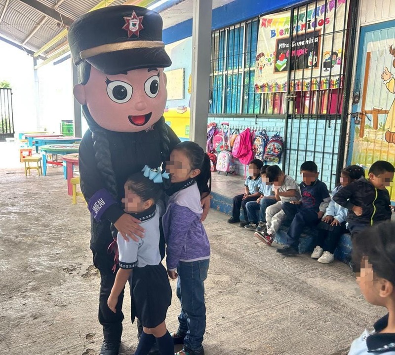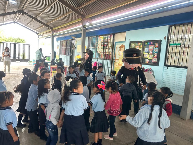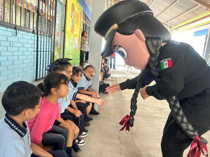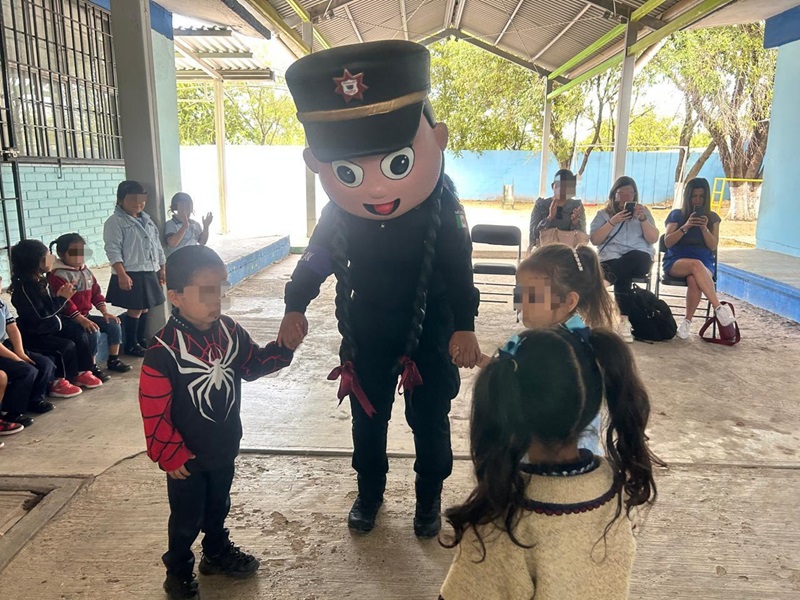 La visita a esta institución fue animada por las botargas oficiales de la SSPT, Coronel Justicia y Capitana Honradez de la Guardia Estatal de Género, quienes convivieron con los menores.