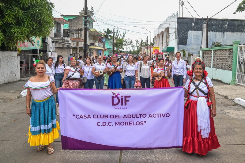 La Directora general del organismo, Mariana Altamirano Aceves, informó que personal y beneficiarios de la Casa Club del Adulto Activo de la colonia Infonavit, así como del Centro de Desarrollo Comunitario de la colonia Morelos, tuvieron una destacada presencia en el tradicional desfile, además del equipo deportivo de pelota tarasca y la Red Municipal de los niños y jóvenes Impulsores de la Transformación.