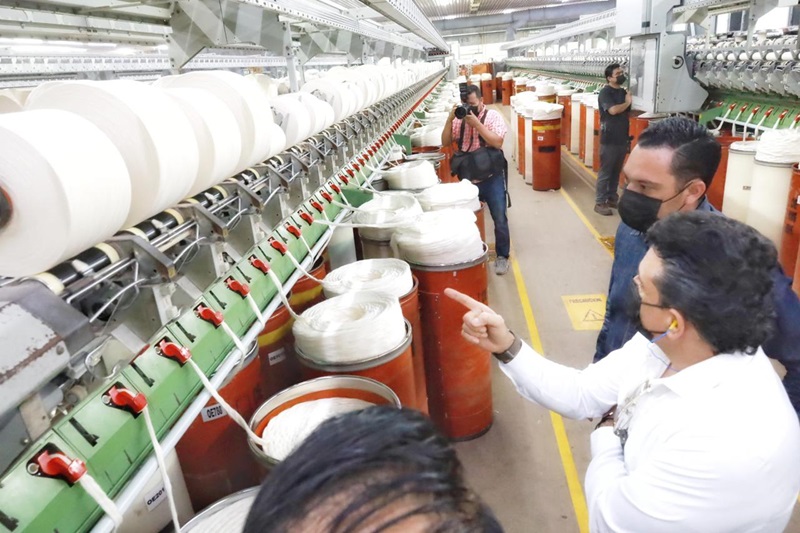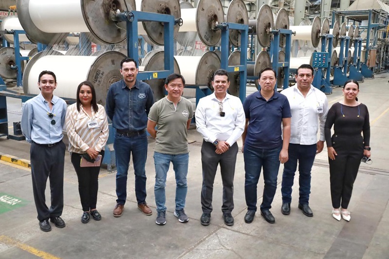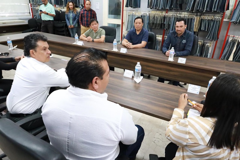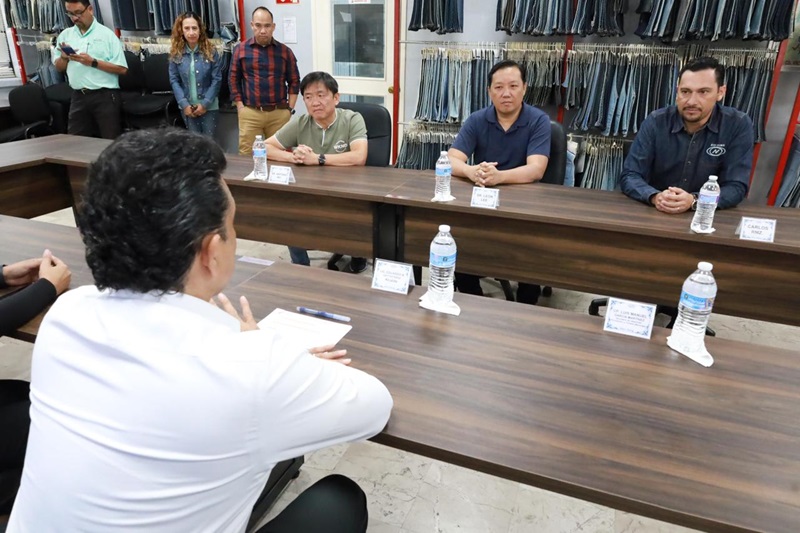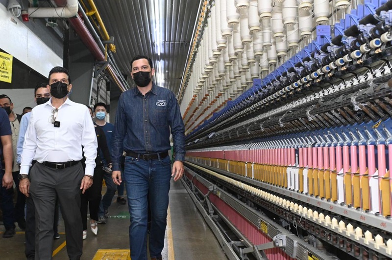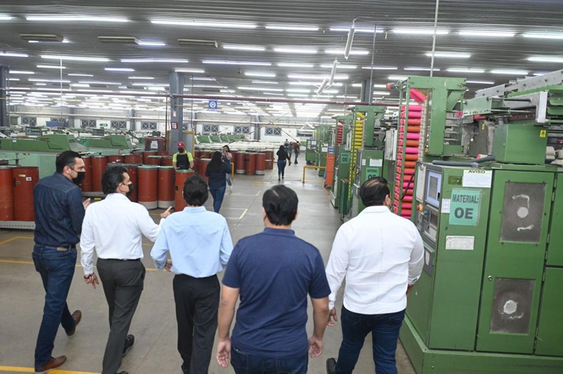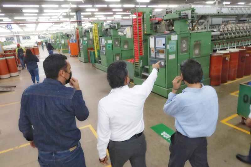 Tras sostener una mesa de dialogo, atendió la invitación del gerente administrativo Leon Lee, Antonio Wu, Subgerente Administrativa y Carlos Ramírez, Gerente Recursos Humanos, para realizar un recorrido por las plantas donde se confecciona tela de mezclilla de alta calidad.