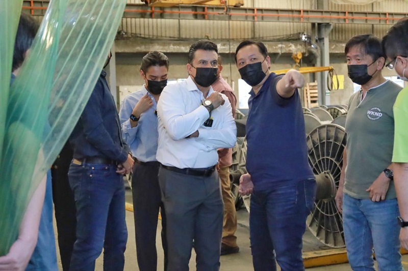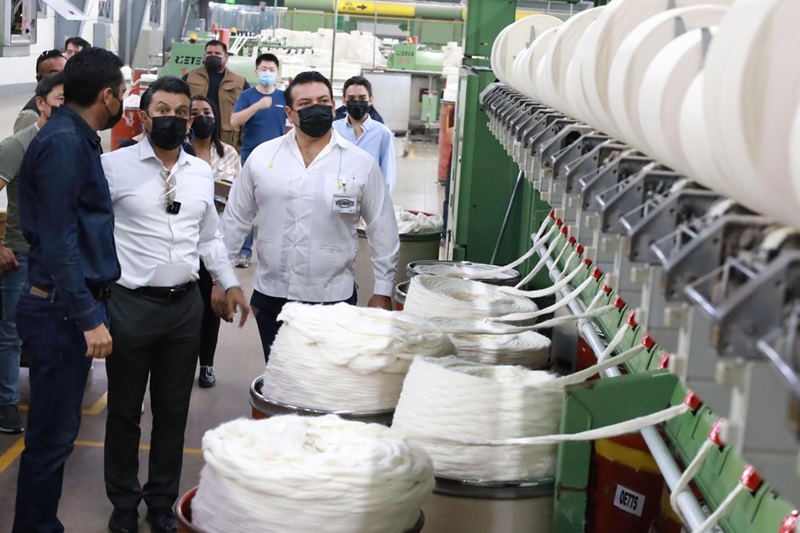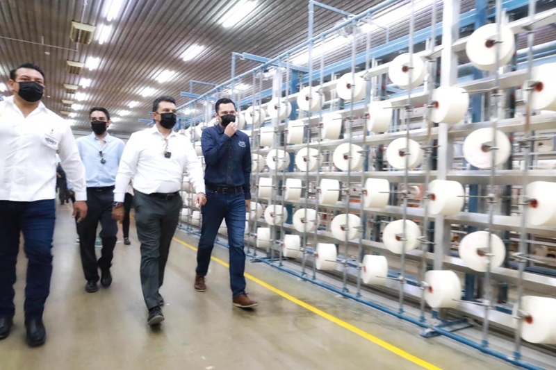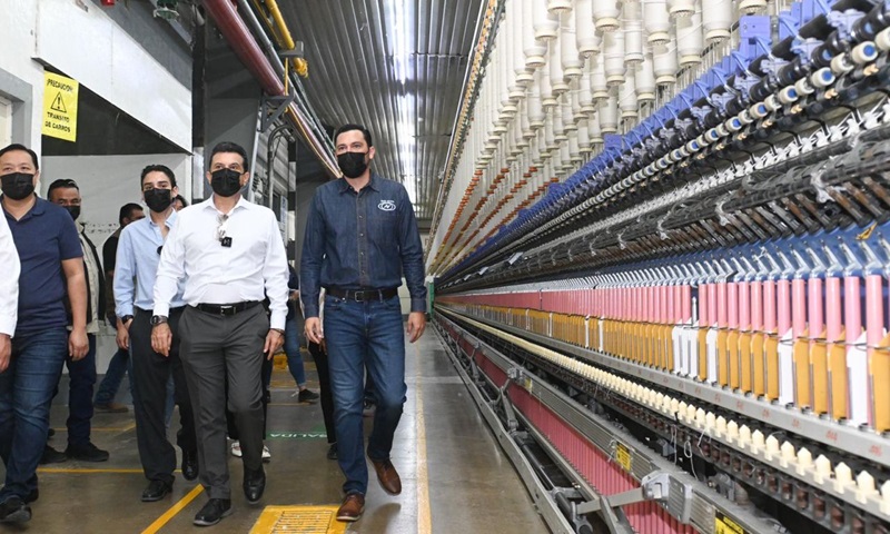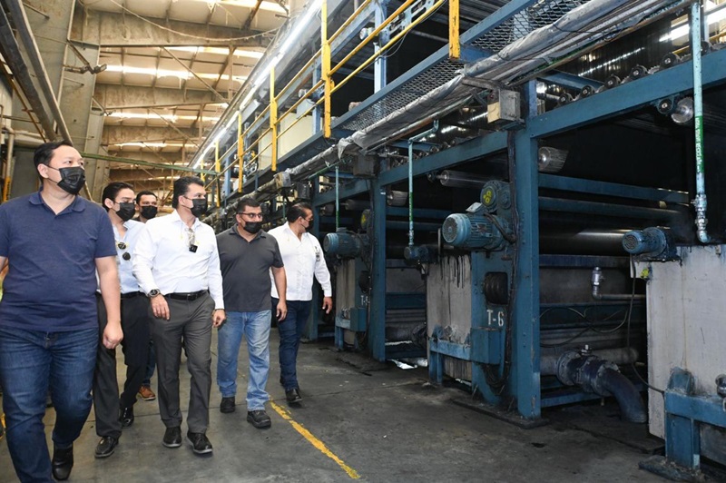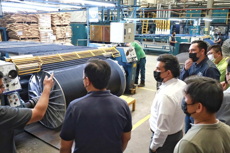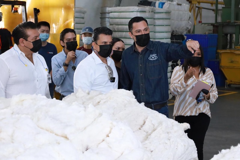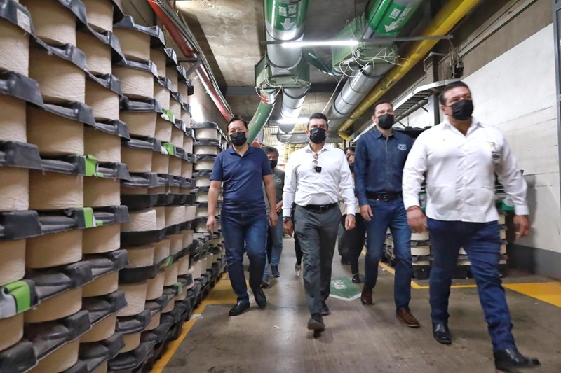 Tras sostener una mesa de dialogo, atendió la invitación del gerente administrativo Leon Lee, Antonio Wu, Subgerente Administrativa y Carlos Ramírez, Gerente Recursos Humanos, para realizar un recorrido por las plantas donde se confecciona tela de mezclilla de alta calidad.