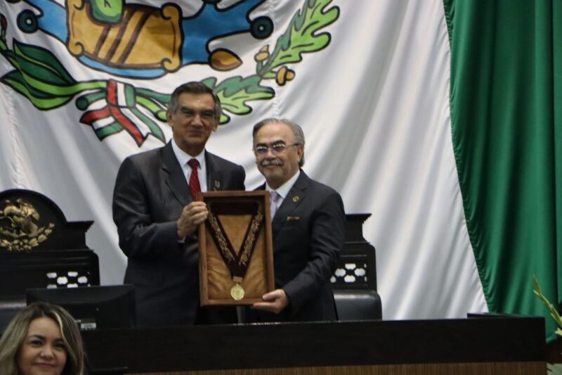Y de su trayectoria, destacó que se especializó en diversas áreas de la cirugía en prestigiosas instituciones nacionales, “su legado incluye la obtención de la Medalla de Plata del Premio Nacional de Investigación Quirúrgica, Medalla a la Excelencia Quirúrgica de Tamaulipas, Medalla Fray Andrés de Olmos por distinción al Mérito Ciudadano, Académico y Artístico, entre otros logros”.