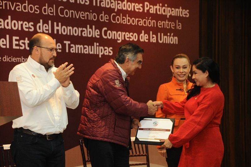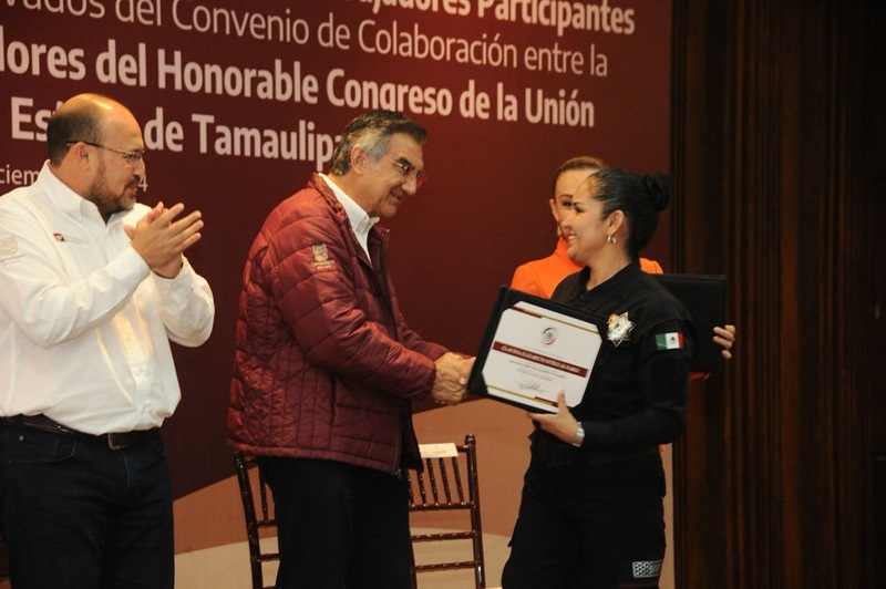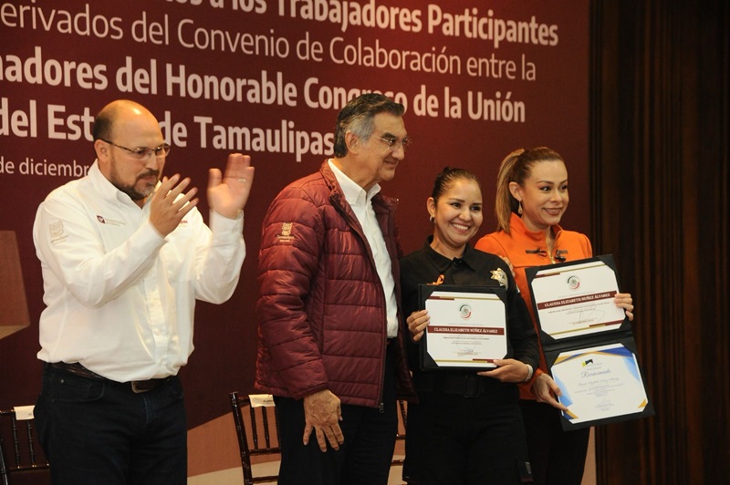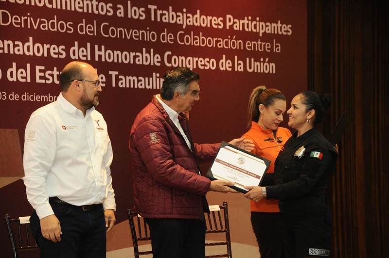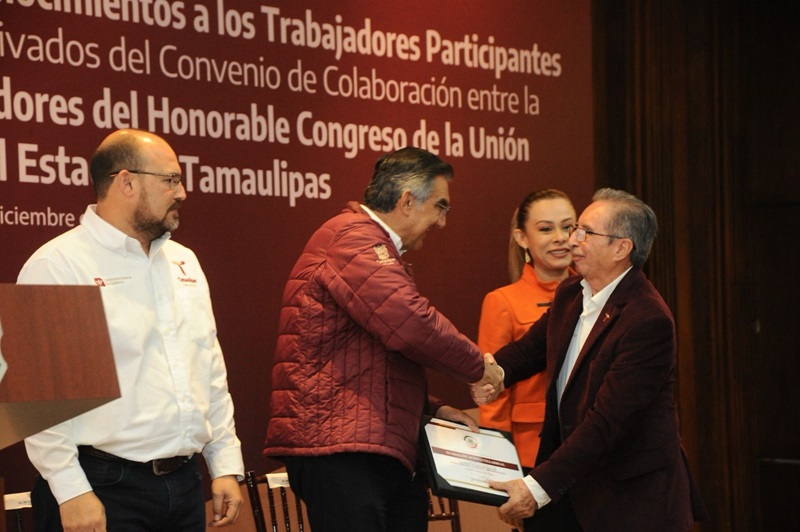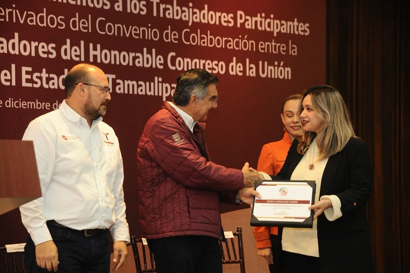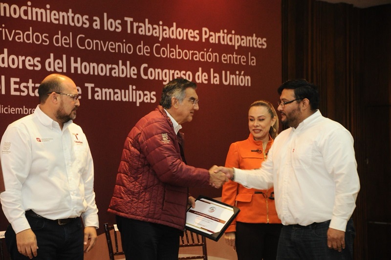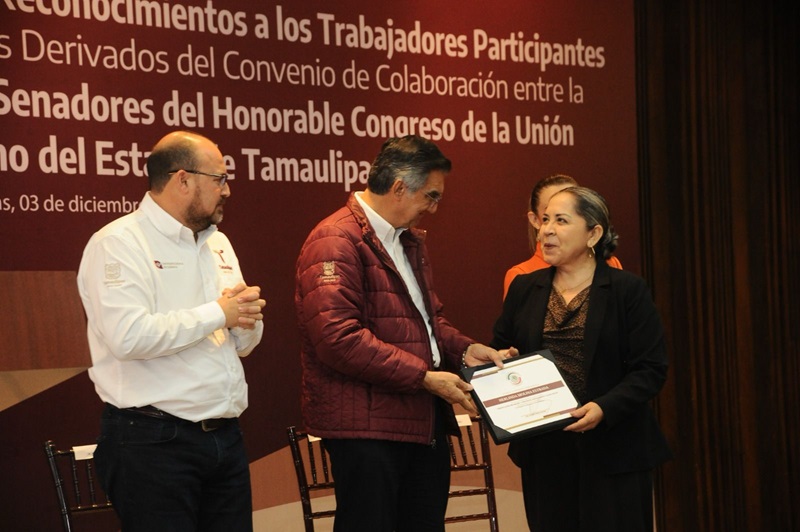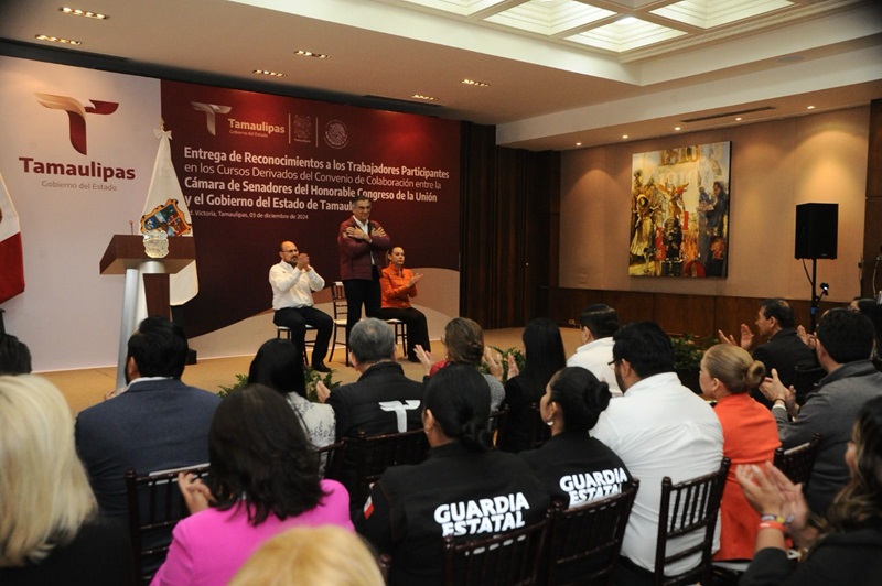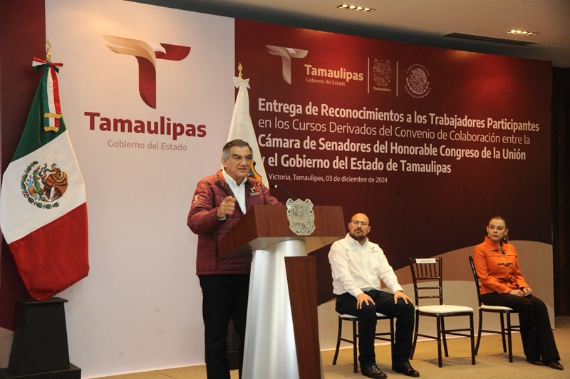 CIUDAD VICTORIA, TAMPS. Al señalar que es prioridad para su gobierno que las y los servidores públicos se capaciten de manera continua, el gobernador de Tamaulipas, Américo Villarreal Anaya, hizo entrega de 59 reconocimientos a personal de diferentes secretarías que concluyeron cursos de capacitación derivados del Convenio de Colaboración entre la Cámara de Senadores del Congreso de la Unión y el Gobierno de Tamaulipas.