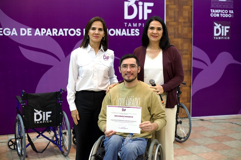La entrega de aparatos funcionales tuvo como invitados especiales a la Directora general del DIF Tampico, Mariana Altamirano Aceves; así como a la Coordinadora de Gestión Social del DIF municipal, Guadalupe María Sánchez Aguilar y en representación del secretario de Bienestar, Omar Fabbri Flores; Katia Córdova.