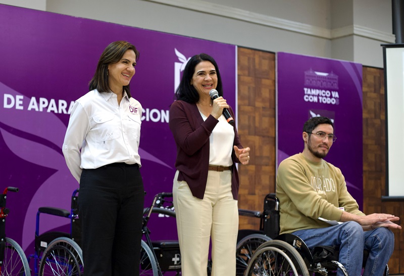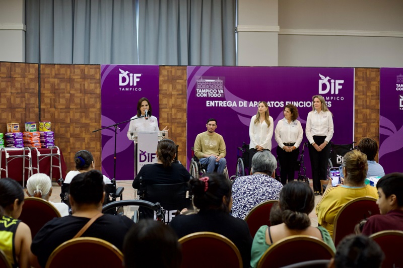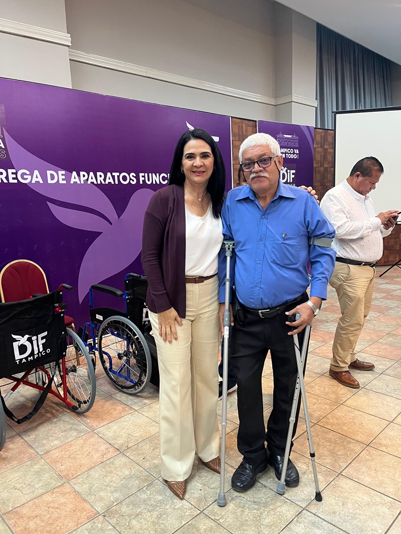 TAMPICO, TAMPS. En el marco del ‘Día Internacional de las Personas con Discapacidad’, la Presidenta municipal Mónica Villarreal Anaya y la titular del Sistema DIF Tampico, Luz Adriana Villarreal Anaya encabezaron la entrega de aparatos funcionales en beneficio de más de 70 personas con discapacidad.