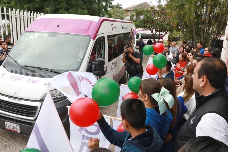 En compañía de representantes del sector empresarial, de la construcción y Servicio de Administración Tributaria, Lucy de Gattás dio el banderazo a vehículos oficiales para el servicio de personas con discapacidad y la campaña de pega de calcas como parte de las actividades del ‘Día Internacional de las Personas con Discapacidad’.