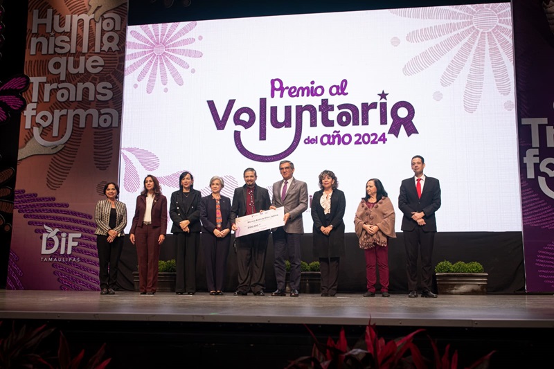 CIUDAD VICTORIA, TAMPS. En el marco del ‘Día Internacional de los Voluntarios’, el gobernador Américo Villarreal Anaya y la presidenta del Sistema DIF Tamaulipas, la doctora María de Villarreal, hicieron entrega del Premio al Voluntario del Año 2024 en las categorías individual y grupal, en un evento realizado en el Centro Cultural Tamaulipas.