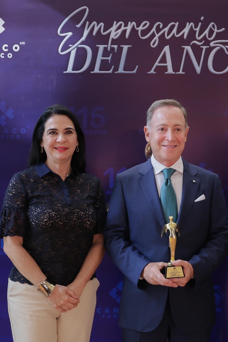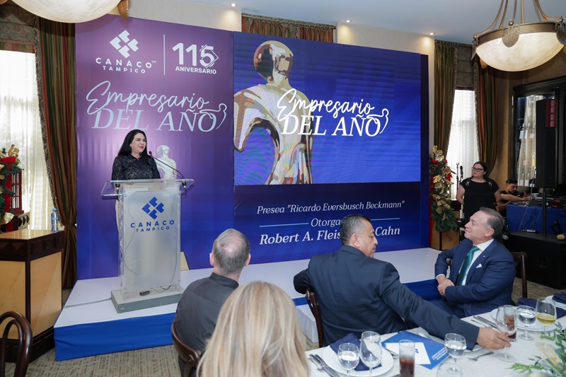 TAMPICO, TAMPS. La Presidenta municipal, Mónica Villarreal Anaya asistió a la entrega de la presea al empresario del año 2024 «Ricardo Eversbusch Beckmann”, otorgada por la Cámara Nacional de Comercio de Tampico al empresario porteño Robert A. Fleishman Kahn en un evento desarrollado en el Club de Industriales.