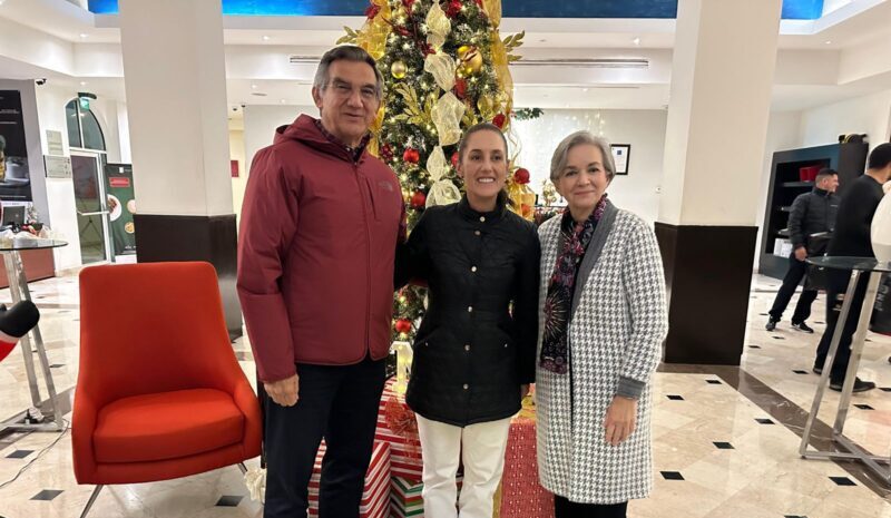 NUEVO LAREDO, TAMPS. La noche de este sábado, y con una temperatura de 9 grados, pero con mucho calor humano, el gobernador Américo Villarreal Anaya y la doctora María de Villarreal, recibieron a la presidenta Claudia Sheinbaum Pardo en la ciudad de Nuevo Laredo, donde este domingo encabezará una jornada de trabajo en instalaciones de la que será la nueva Agencia Nacional de Aduanas y, posteriormente, presidirá un evento masivo en el Poliforum La Fe.