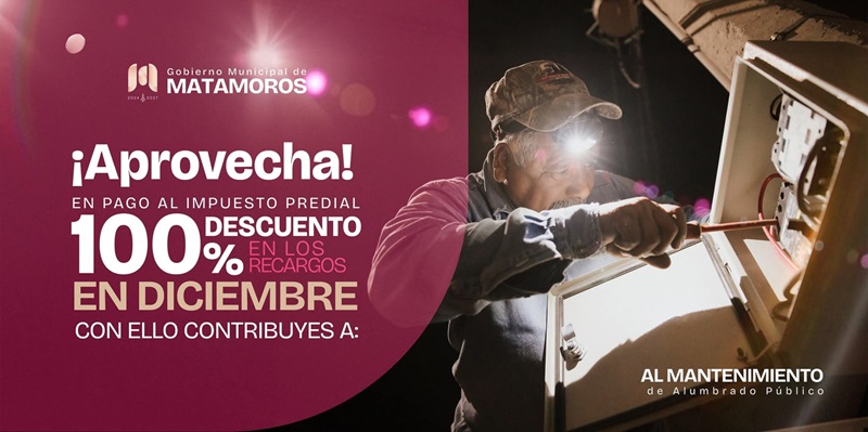 Durante este mes de diciembre, se está ofreciendo un descuento del 100% en los recargos de este impuesto, incentivando a los matamorenses a regularizarse y contribuir al mejoramiento de su comunidad.