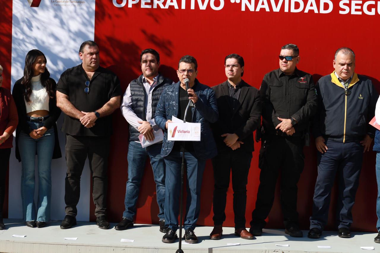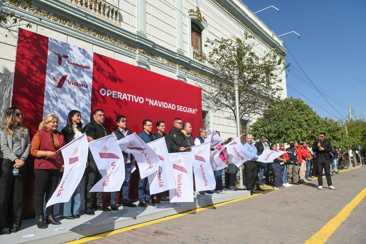 CIUDAD VICTORIA, TAMPS. Para garantizar la tranquilidad y el bienestar de los victorenses durante la temporada decembrina, el presidente municipal de Victoria, Eduardo Gattás Báez, acompañado por mandos de seguridad, Protección Civil y representantes del sector empresarial, puso en marcha el operativo “Navidad Segura”, con el despliegue de más de 350 elementos en las zonas comerciales de la ciudad.