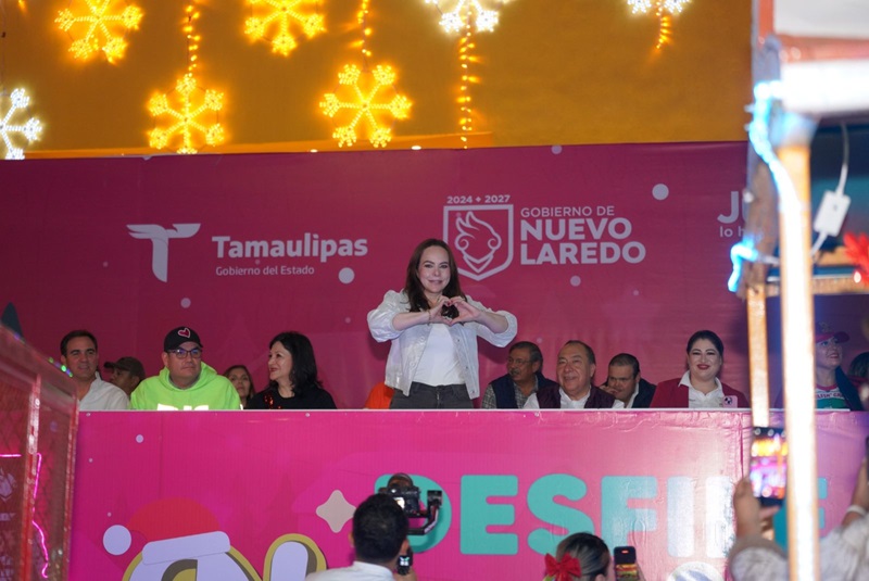 «Estamos muy contagiados de la alegría de la navidad, celebrando el orgullo de ser neolaredenses, y disfrutar este arranque del desfile, ya estaban las familias reuniéndose, pidiéndoles a todos que disfruten de este bonito desfile. Agradecemos a las distintas empresas que hacen posible este bonito desfile, participa el DIF y muchas organizaciones. Es una época de estar todos en unión, de poder disfrutar tantos eventos que hay en nuestra ciudad», expresó emocionada.
