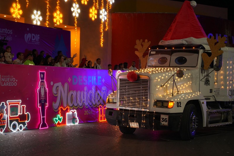 NUEVO LAREDO, TAMPS. Las calles de Nuevo Laredo se llenaron de alegría y espíritu navideño con el gran Desfile Navideño organizado por el Gobierno Municipal en el que más de 60 contingentes participaron e iluminaron las principales avenidas con música, colores y personajes que llevaron magia a cada rincón de la ciudad.