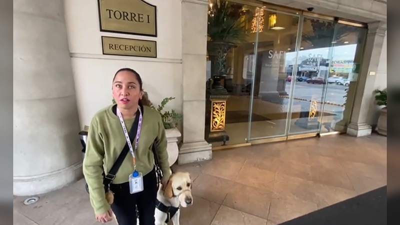 Sary Cn, acudió en compañía de su perro guía para acceder a las instalaciones del Hotel Safi en Monterrey, NL, señaló que sufrió discriminación pues le bloquearon el ingreso la mañana del 16 de diciembre. FOTO