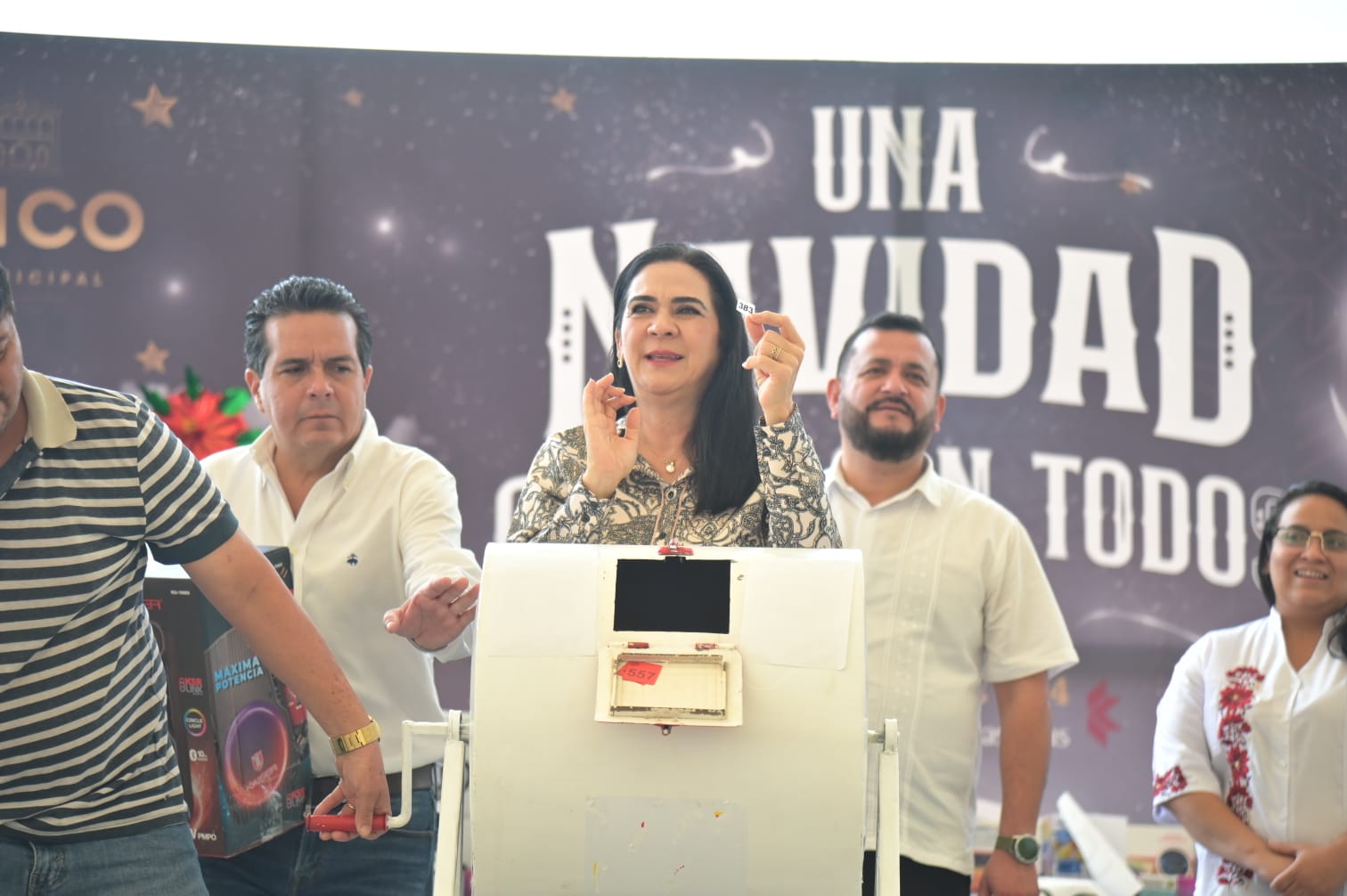 La alcaldesa porteña reconoce labor de los trabajadores del municipio durante la tradicional posada navideña.