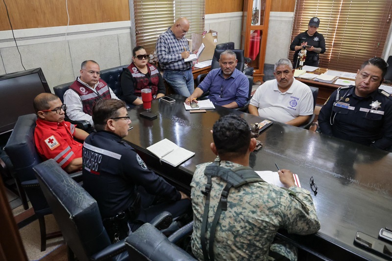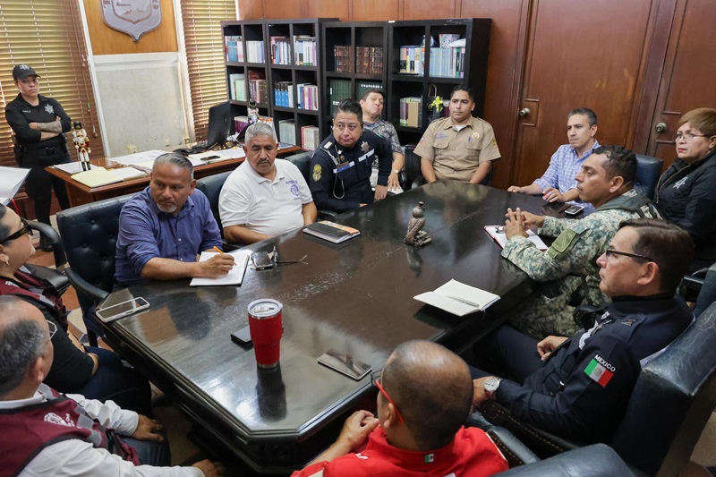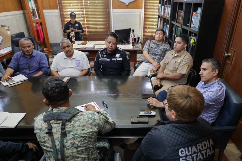 «En el marco del operativo conjunto ‘Navidad Segura‘ este día sostuvimos una reunión con el Secretario General del Ayuntamiento Carlos García Porres; en el que participaron representantes del Ejército Mexicano, Guardia Estatal, Guardia Nacional, Tránsito y Vialidad, Cruz Roja, Bomberos y Protección Civil para determinar las línea de acción que realizaremos en la celebración de año nuevo».