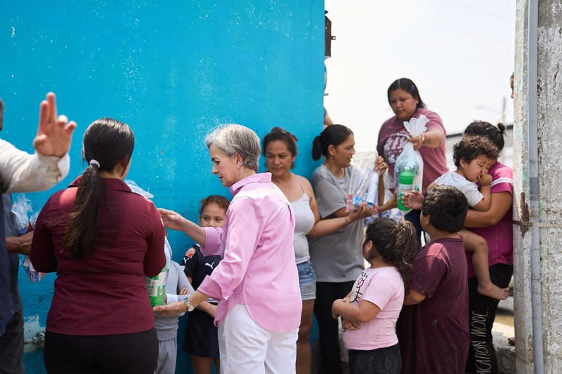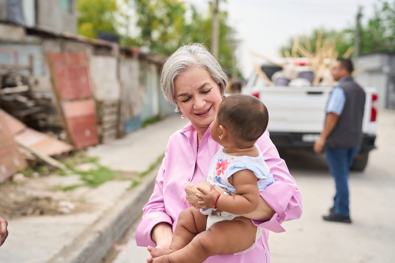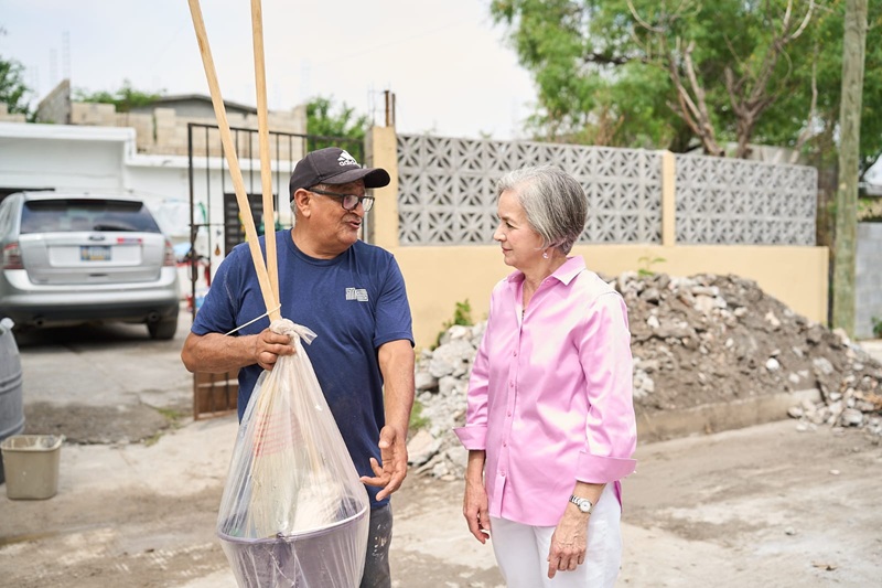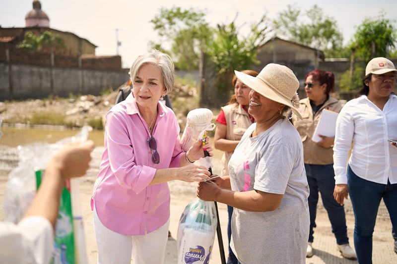 REYNOSA, TAMPS. La presidenta del Sistema DIF Tamaulipas, la doctora María de Villarreal, realizó un recorrido por los sectores afectados por lluvias e inundaciones en la ciudad de Reynosa, donde entregó paquetes de limpieza para el hogar e higiene personal, a fin de apoyar a las familias damnificadas en el restablecimiento de sus condiciones de bienestar.