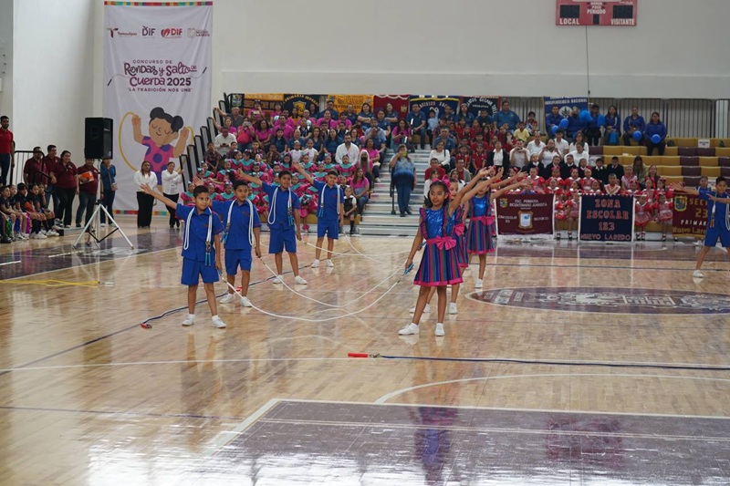 NUEVO LAREDO, TAMPS. Con el propósito de fomentar el desarrollo integral de la niñez y preservar las tradiciones culturales, se llevó a cabo la etapa municipal del Concurso Estatal de Rondas y Salto de Cuerda “La Tradición Nos Une”, organizado por el DIF Tamaulipas que preside la Dra. María de Villarreal.