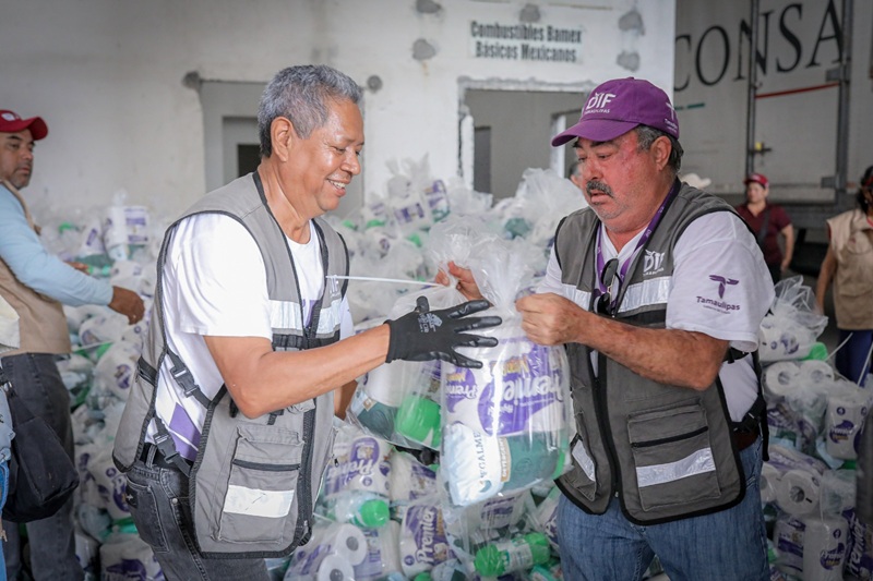 REYNOSA, TAMPS. En seguimiento a las actividades que inició en días pasados la doctora María de Villarreal, presidenta del Sistema DIF Tamaulipas, los Mensajeros de Paz continúan entregando apoyos a las familias que resultaron más afectadas por las lluvias atípicas en Reynosa y otros municipios de la frontera.