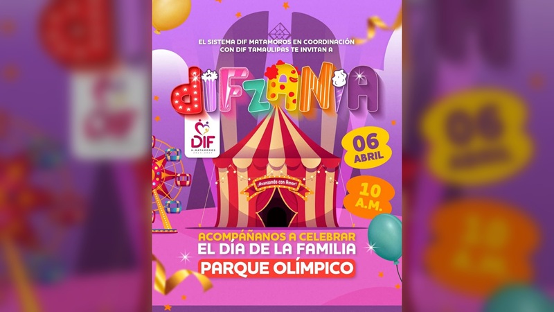MATAMOROS, TAMPS. El Gobierno de Matamoros, encabezado por el alcalde Beto Granados, en coordinación con el DIF Municipal, invita a todas las familias a disfrutar de DIFzania, un evento lleno de magia y diversión que se llevará a cabo este domingo 6 de abril en el Parque Olímpico.