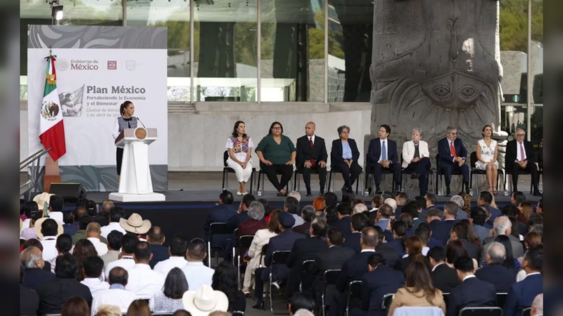 En el Museo Nacional de Antropología, Sheinbaum encabezó la estrategia “Plan México, fortaleciendo la economía y el bienestar”, ante políticos, gobernadores empresarios, representantes de trabajadores y de pueblos indígenas.