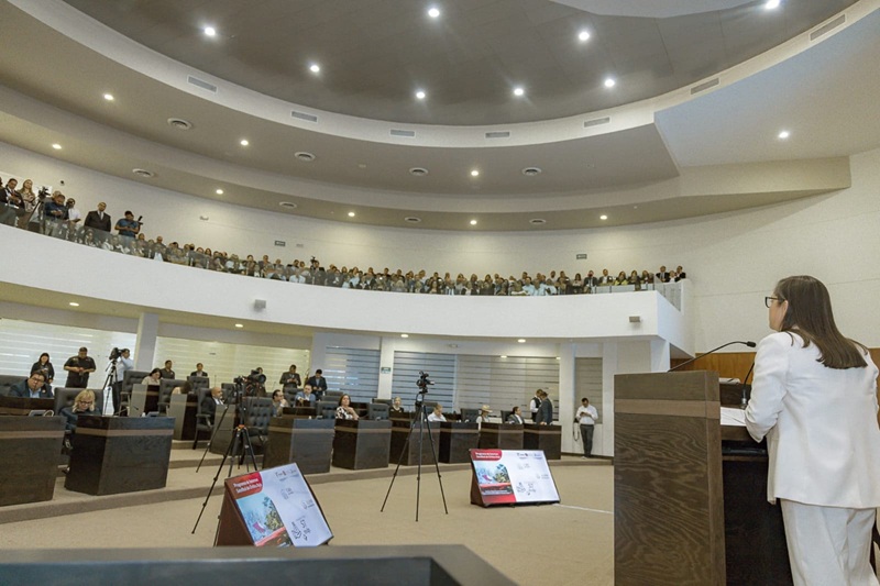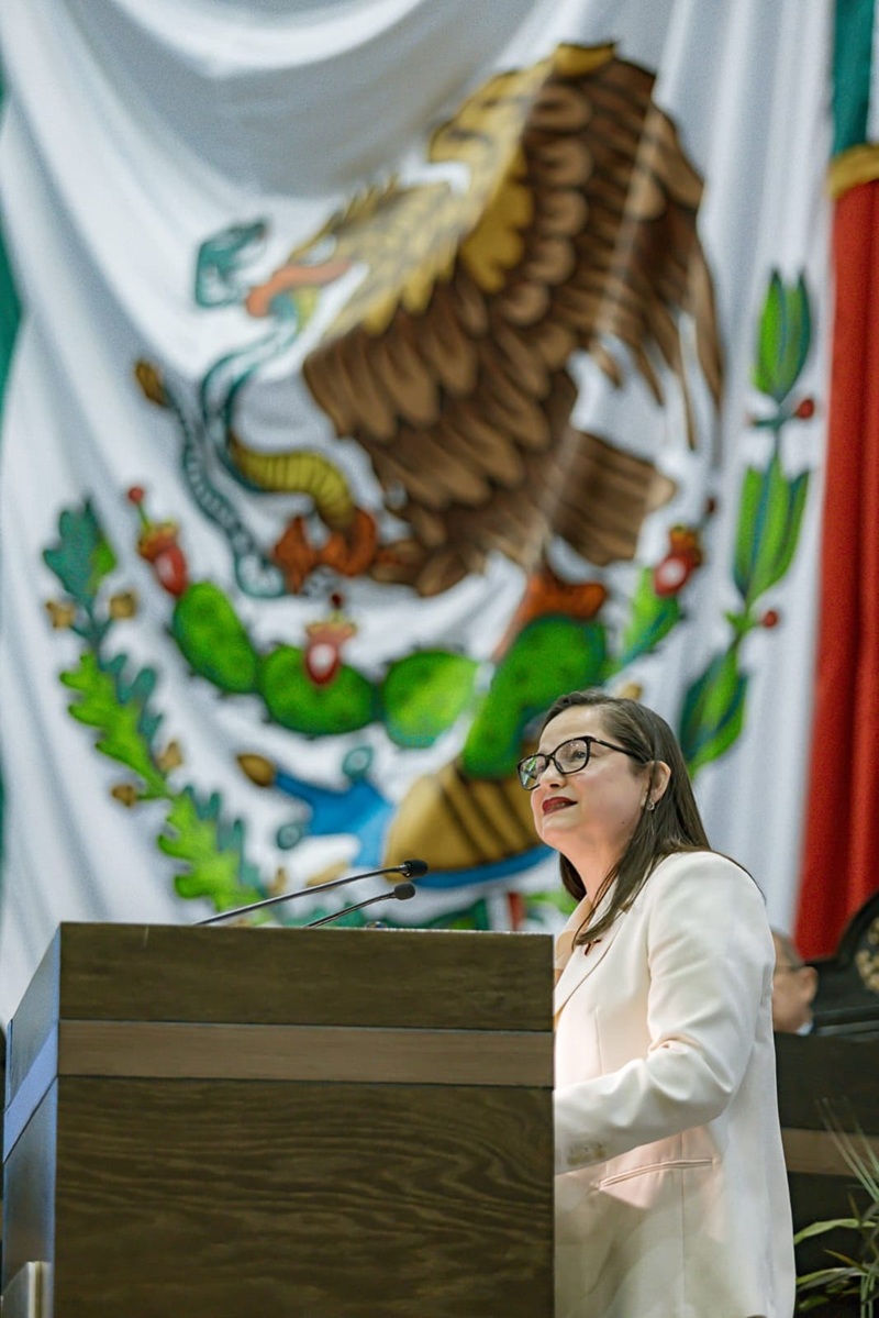 La funcionaria, quien compareció ante el Pleno de la Sexagésima Sexta Legislatura como parte del Tercer Informe de Gobierno del gobernador Américo Villarreal Anaya, agradeció a las y los legisladores por abrir el espacio de diálogo y rendición de cuentas, como lo establece la ley.