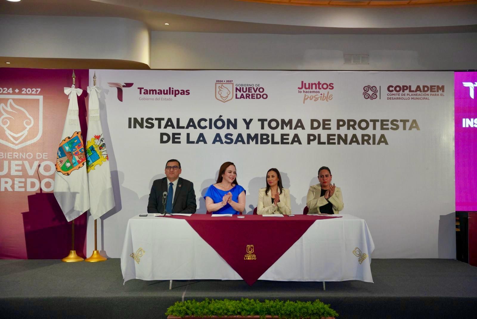 NUEVO LAREDO, TAMPS. Con el firme compromiso de seguir construyendo un gobierno participativo y cercano a la ciudadanía, la presidenta municipal Carmen Lilia Canturosas Villarreal encabezó la instalación y toma de protesta de los integrantes de la Asamblea Plenaria del Comité de Planeación para el Desarrollo Municipal (COPLADEM), órgano que agrupa a representantes de la iniciativa privada, autoridades federales, estatales, educativas, asociaciones civiles, universidades y ciudadanos.