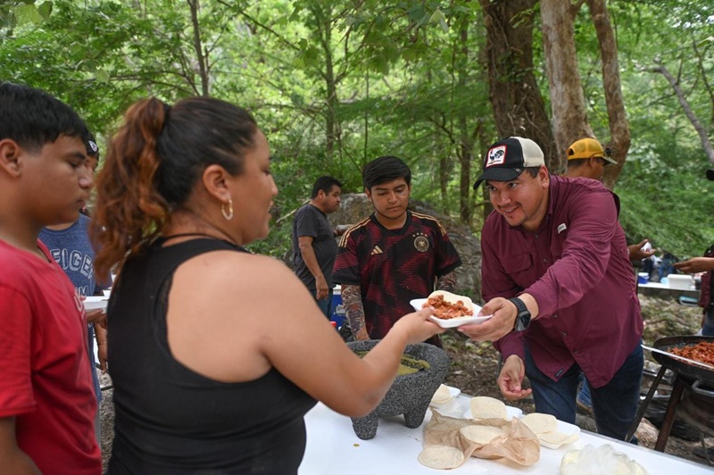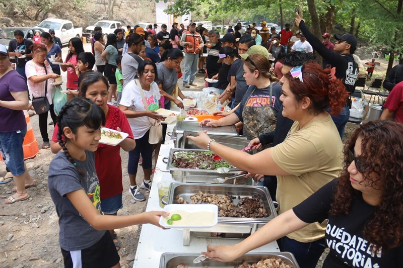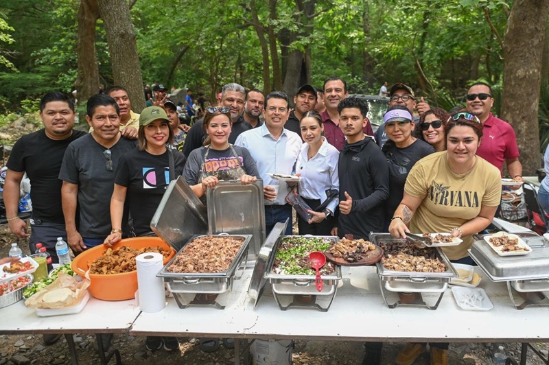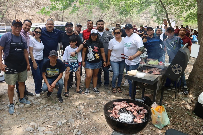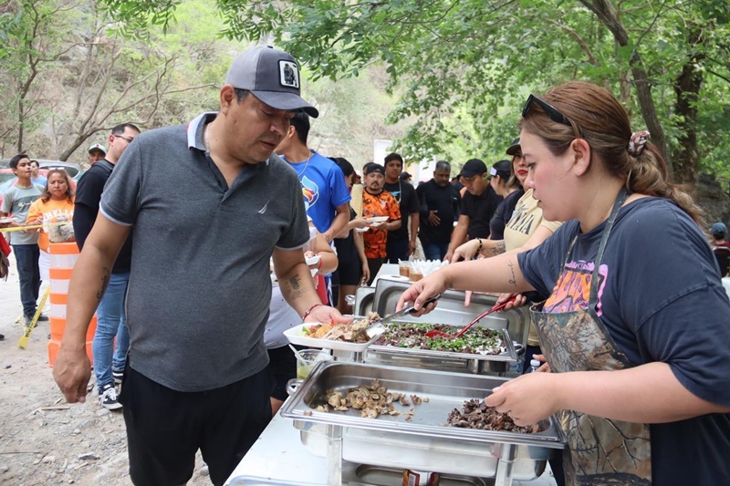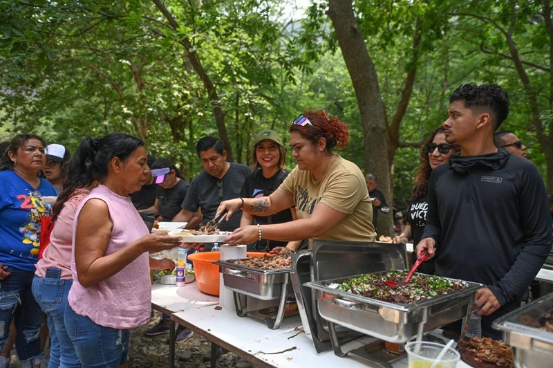 En medio de la naturaleza, funcionarios de las distintas áreas del Ayuntamiento instalaron su asador y mesas para cocinar los alimentos que más tarde compartieron, de manera gratuita con las familias que convivían a la orilla del río y sombra de los árboles.