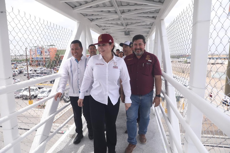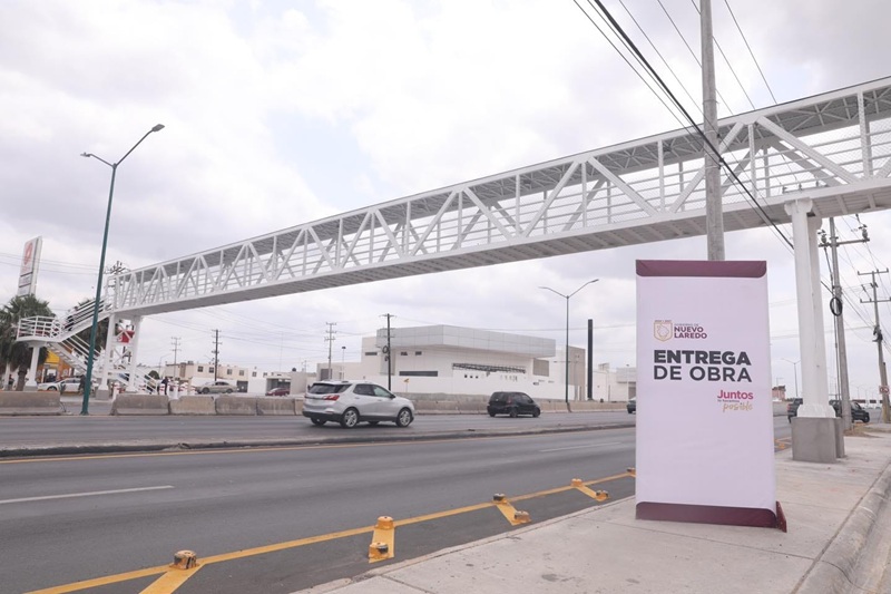 NUEVO LAREDO, TAMPS. Para cumplir con su compromiso de brindar mayor seguridad a las familias del sector sur de la ciudad, la presidenta municipal Carmen Lilia Canturosas Villarreal inauguró el nuevo puente peatonal por Carretera Nacional en el kilómetro 10, una obra largamente esperada por los habitantes de las colonias Colinas del Sur, Sierra El Álamo, Bosques del Sur y Jardines de la Hacienda.