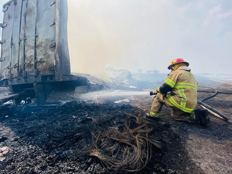 Fue esta tarde, mientras elementos del Cuerpo de Bomberos y Protección Civil del municipio de Güémez trataban de sofocar un incendio de pastizal, el operador de un tráiler presuntamente perdió la visibilidad a consecuencia de la fuerte humareda y se impactó contra varios vehículos, generando un choque múltiple que dejó varios vehículos consumidos por el fuego.