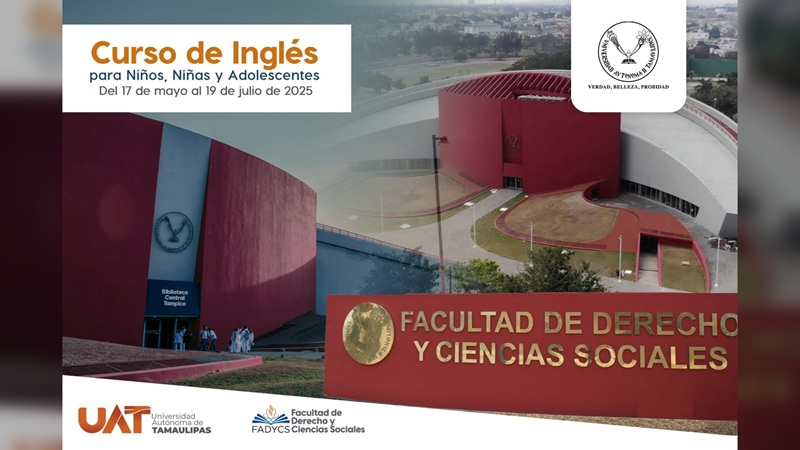 CIUDAD VICTORIA, TAMPS. La Universidad Autónoma de Tamaulipas (UAT), bajo el liderazgo del rector Dámaso Anaya Alvarado, consolida su misión de impulsar la formación integral con sentido humanista a través del Programa de Inglés para Niños, Niñas y Adolescentes, una iniciativa de la Facultad de Derecho y Ciencias Sociales Tampico (FADYCS), que busca democratizar el acceso al aprendizaje del idioma inglés en comunidades con escasos recursos.