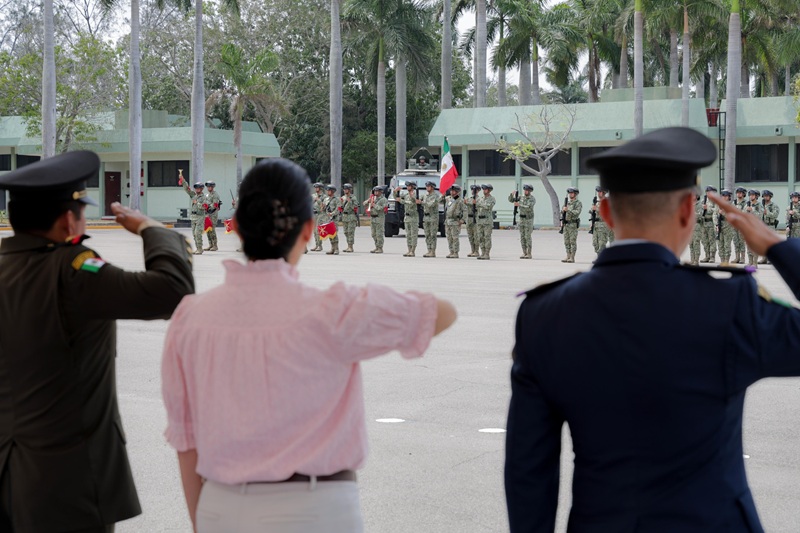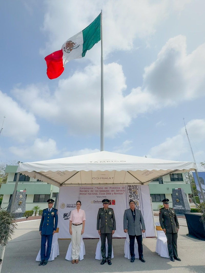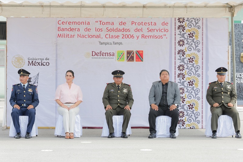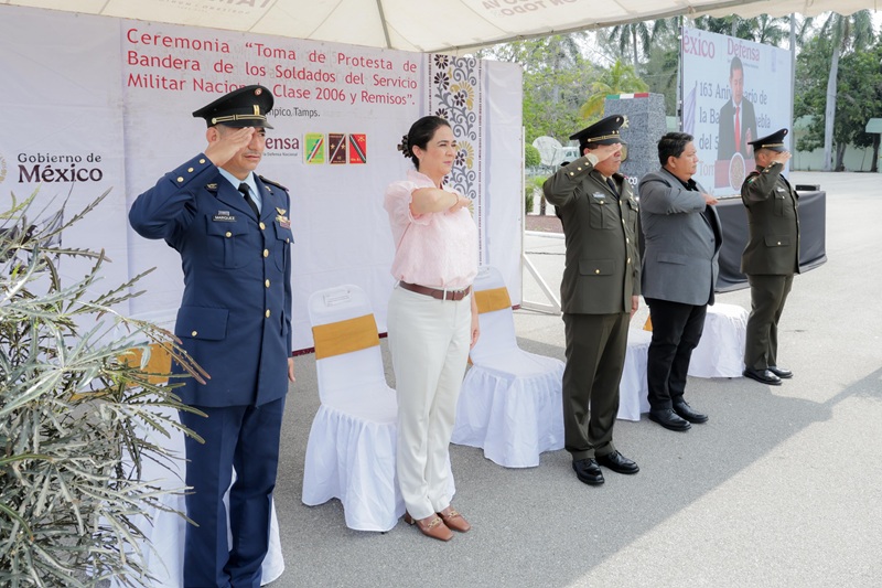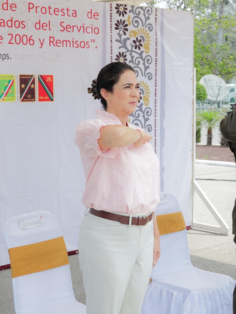 TAMPICO, TAMPS. La Presidenta municipal de Tampico, Mónica Villarreal Anaya asistió a la ceremonia de protesta de Bandera por parte de los conscriptos del Servicio Militar Nacional Clase 2006 y remisos en las instalaciones del Quinceavo Batallón de Infantería.