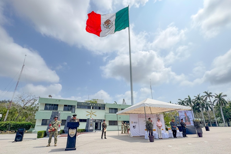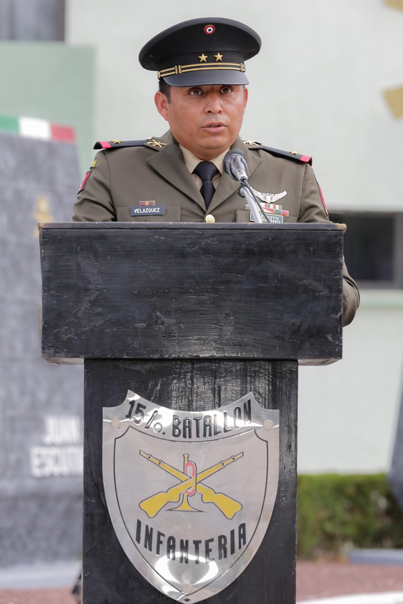 El evento, que se efectuó de manera simultánea en todo el país en el marco del 163 aniversario de la Batalla de Puebla, fue encabezado por el segundo Comandante del Centro de Adiestramiento del Servicio Militar Nacional y del 15.o Batallón, Coronel de Infantería, Vicente Velázquez Torres; y por el Mayor de Infantería, Julián Bellerreza Acosta, Jefe de la sección de Personal, Abastecimiento y Ayudantía del citado campo militar.