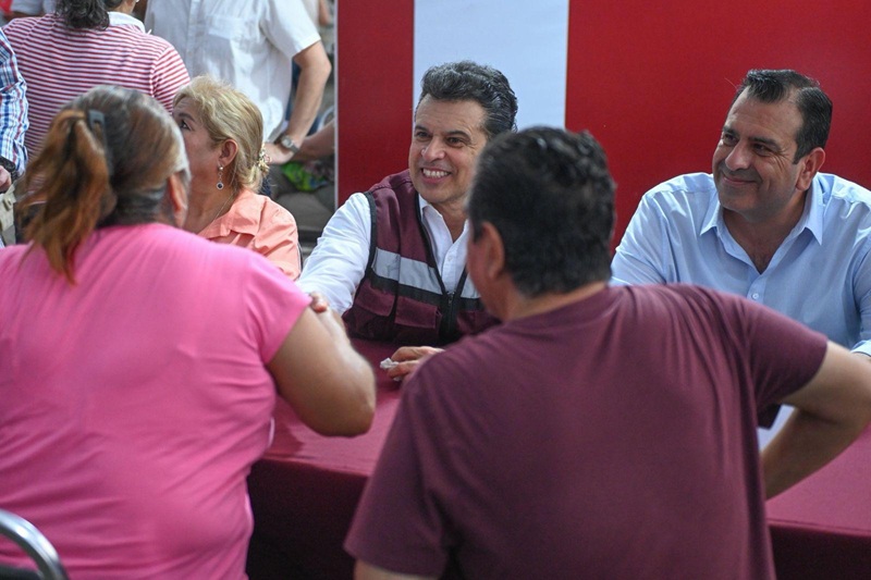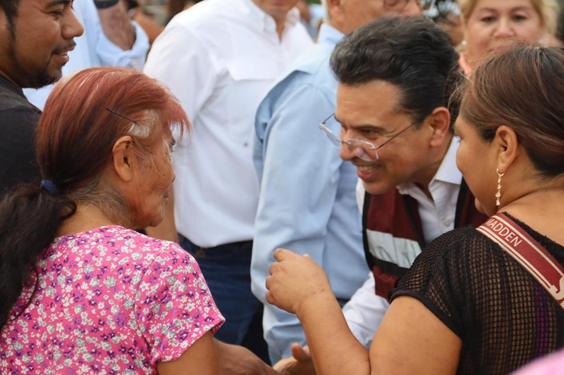 Acompañado de integrantes del Gabinete y Cabildo Municipal, arribó al área deportiva del sector donde fue recibido por más de 400 mujeres, jefes de familia, jóvenes y niños con los que compartió bocadillos, bebidas de sabor, helados, juego de lotería, la rifa de tinacos y atención personalizada en la mesa de audiencia pública.