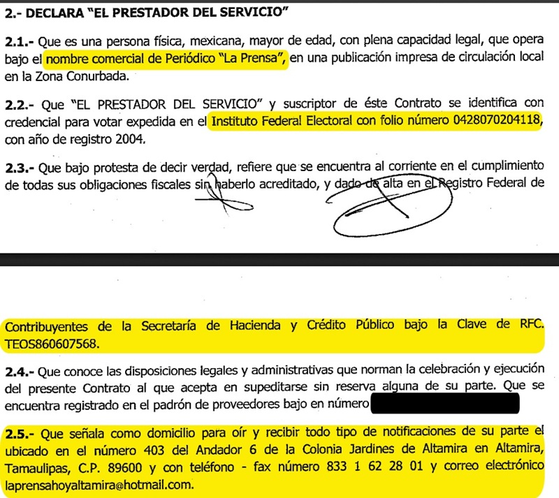 De acuerdo a diversas investigaciones realizadas por el equipo de Noticias PC, Martínez Rubio habría instrumentado un sistema paralelo de control mediático, a través de convenios selectivos con periodistas y medios de comunicación locales, bajo una lógica de cuotas y favores. En ese engranaje aparece Sergio Michel Trejo Orta, un supuesto prestanombres con domicilio fiscal registrado en un departamento abandonado en la Colonia Jardines de Altamira, en la ciudad de Altamira, Tamaulipas.