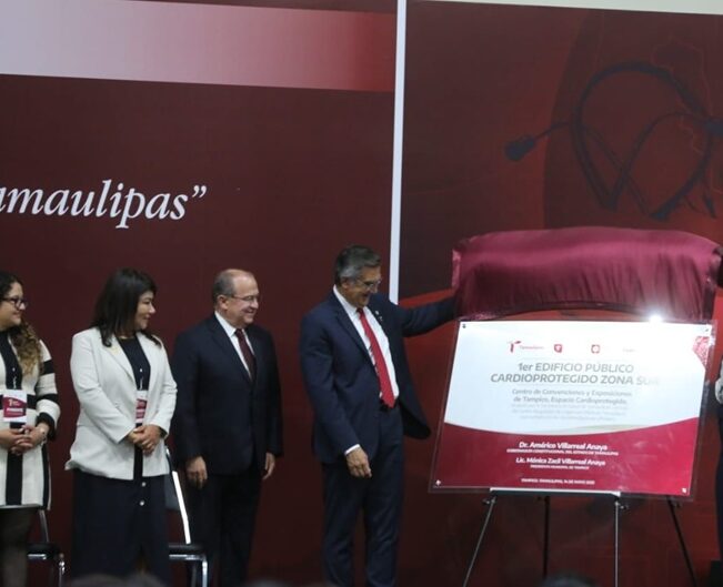 Durante la ceremonia, el gobernador también develó la placa que convierte al Centro de Convenciones Expo Tampico en el primer edificio público cardio protegido y, además, entregó reconocimiento póstumo a las doctoras Cecilia Sanz Sanz y Cecilia Ridaura Sanz por su invaluable legado en la medicina y su incansable compromiso con la salud pública, el cual fue recibido por el doctor Ruy López Ridaura.