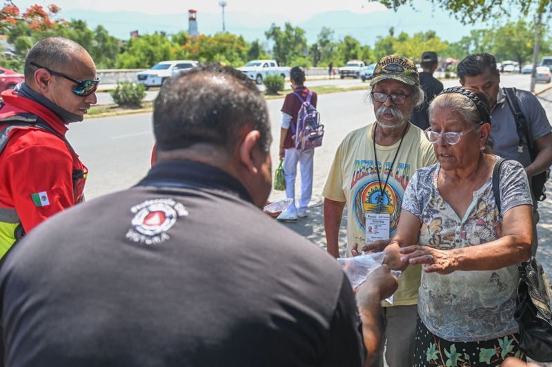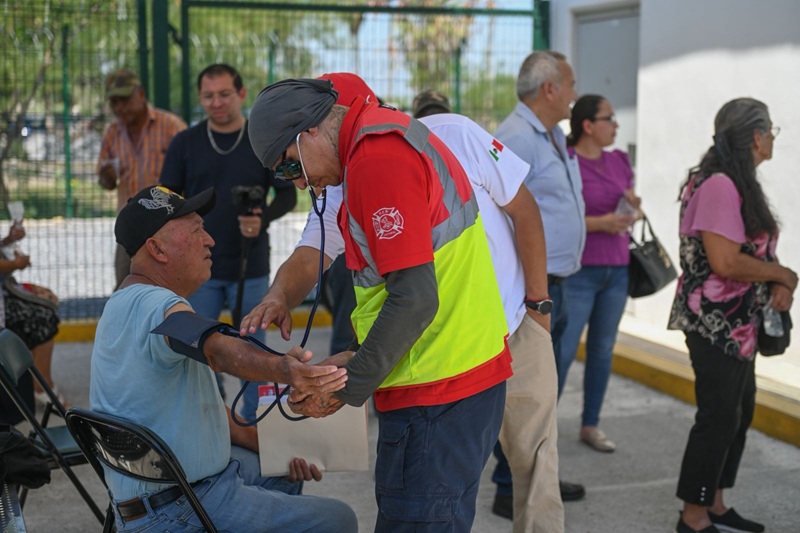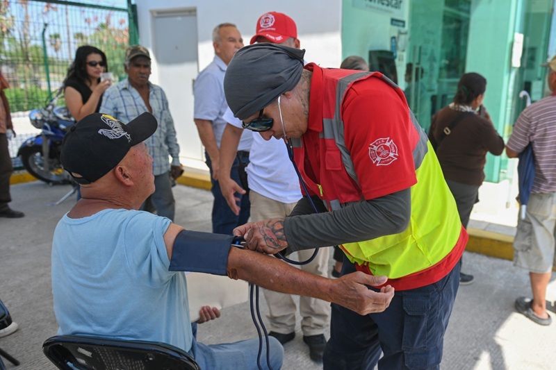 CIUDAD VICTORIA, TAMPS. Para proteger de la ola de calor a beneficiarios de la Pensión Bienestar, la Coordinación de Protección Civil de Victoria activó un operativo de hidratación y atención médica en las instituciones bancarias dónde acuden a tramitar su retribución.