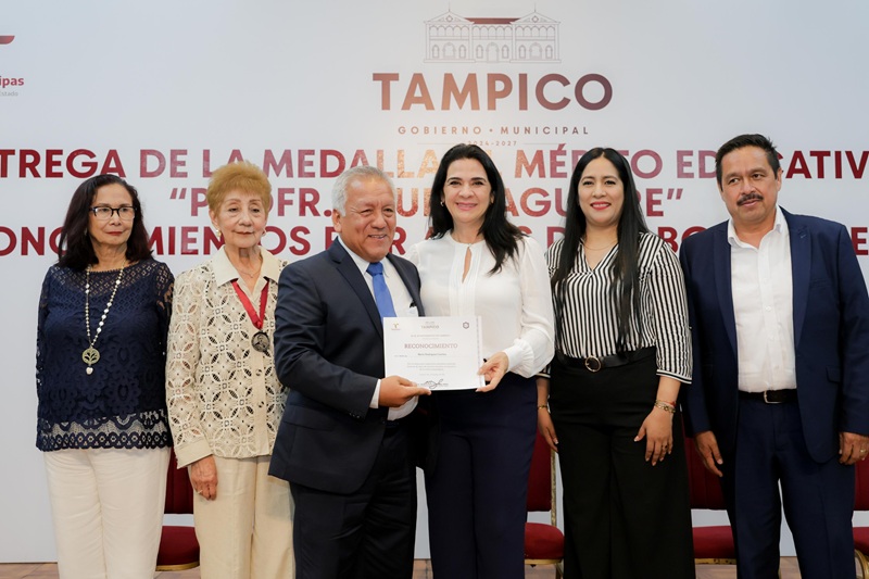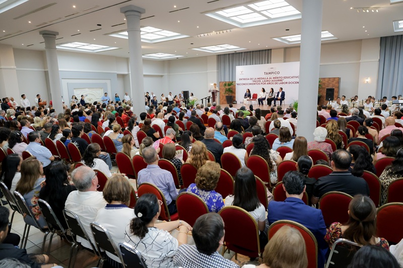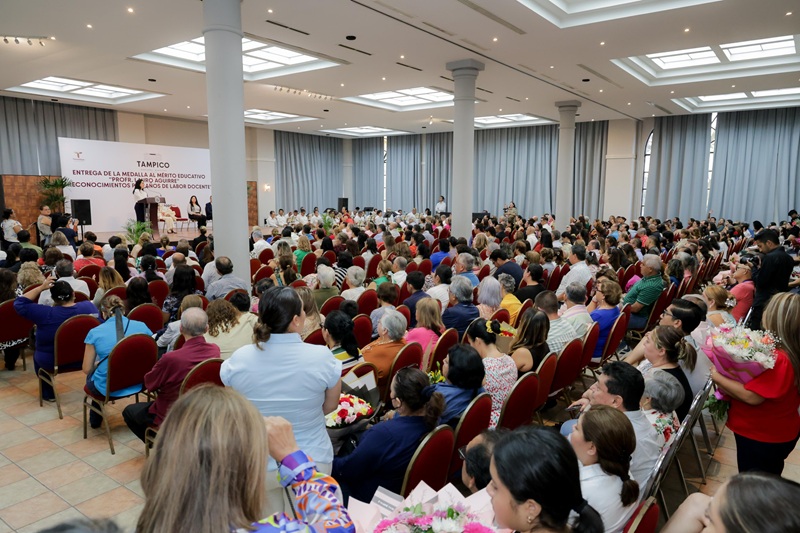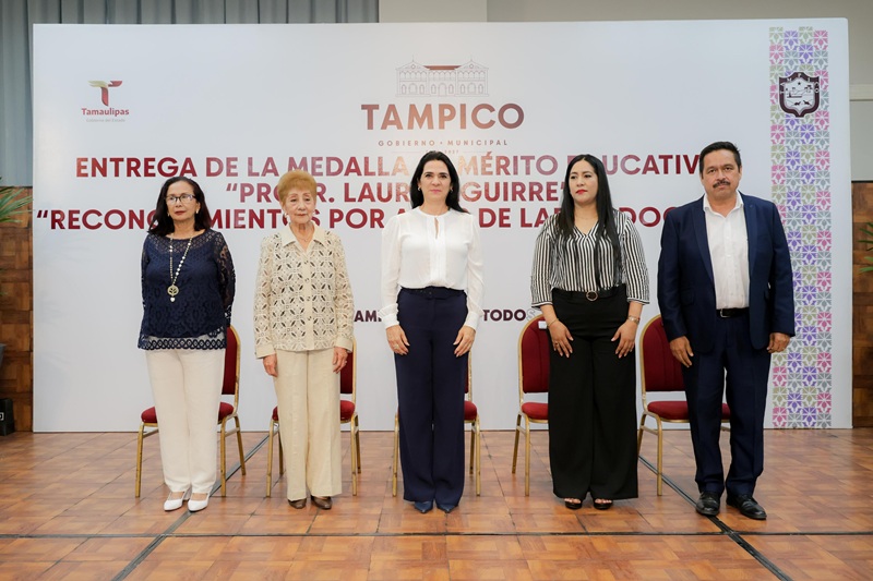 TAMPICO, TAMPS. La Presidenta Municipal de Tampico Mónica Villarreal Anaya, encabezó la ceremonia de entrega de la medalla al mérito educativo “Lauro Aguirre” y reconocimientos a la labor magisterial con 25, 30, 40, 50 y 60 años de servicio docente.