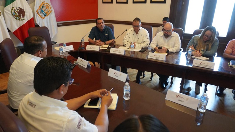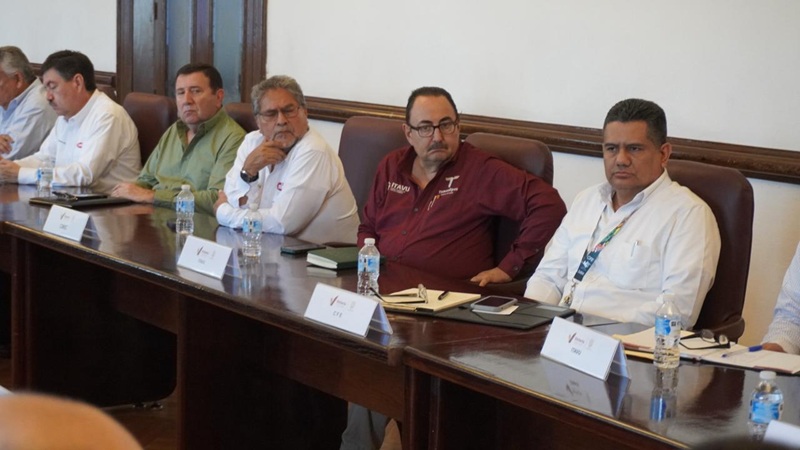 El Secretario del Ayuntamiento Hugo Reséndez Silva coordinó la reunión de trabajo celebrada en la sala de Cabildo en la que participaron titulares de la CFE, ITAVU, CMIC, CANADEVI, COMAPA, áreas municipales e integrantes del Cabildo.