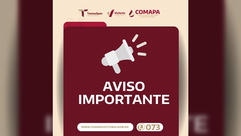 COMAPA Victoria agradece la comprensión de la población ante esta situación imprevisible y reitera su compromiso de continuar trabajando para garantizar el servicio de agua potable en condiciones óptimas para todas y todos los victorenses.