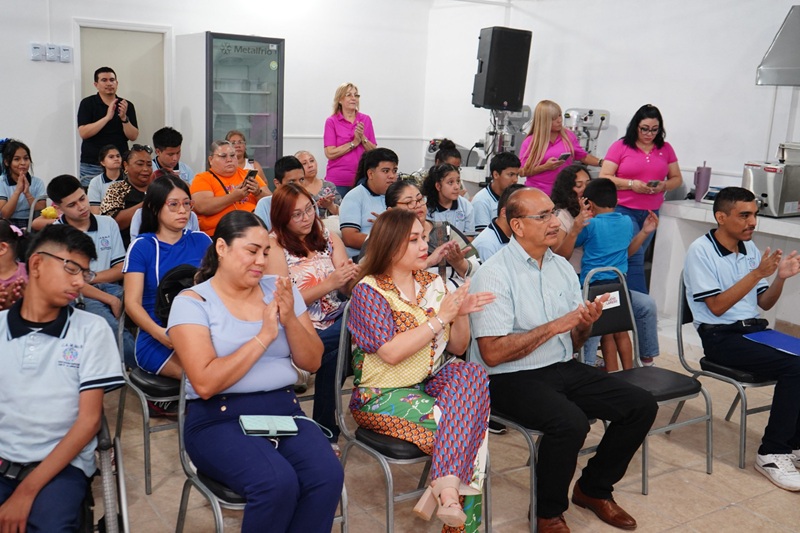 En el CAM No. 9, ubicado en la colonia Infonavit, los recursos fueron destinados al fortalecimiento del taller de panadería “Horneando Sueños”. Con esta inversión se adquirieron cuatro mesas de acero inoxidable y una vitrina hecha a la medida, que permitirá exhibir próximamente los productos elaborados por los estudiantes como parte de su formación laboral y su integración productiva a la sociedad.