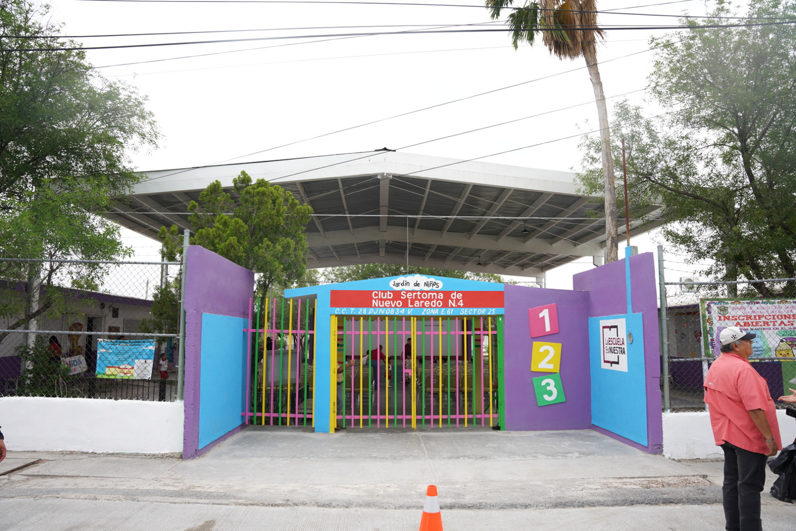 También se realizó la entrega de la rehabilitación de techumbre en el Jardín de Niños Club Sertoma Nuevo Laredo No.4, que beneficiará a 207 estudiantes que ahora contarán con un espacio seguro para la realización de actividades al aire libre. En esta obra se invirtieron 589 mil 313 pesos.