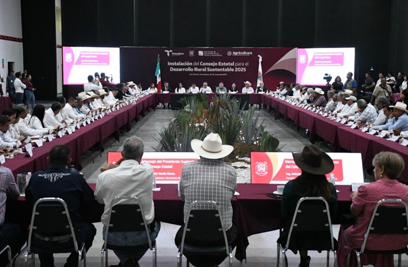 CIUDAD VICTORIA, TAMPS. Con el firme compromiso de impulsar el crecimiento del sector agropecuario y garantizar el uso eficiente de los recursos destinados al campo tamaulipeco, se llevó a cabo la instalación del Consejo Estatal para el Desarrollo Rural Sustentable, esta sesión reunió a autoridades estatales, federales, académicas, alcaldes y representantes de las y los productores de Tamaulipas.