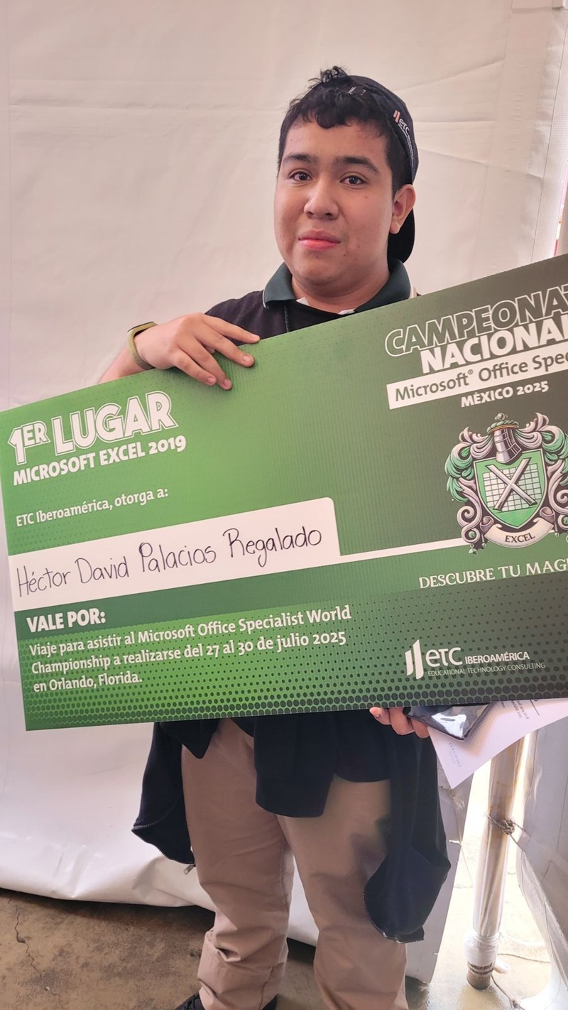 CIUDAD VICTORIA, TAMPS. Héctor David Palacios Regalado, estudiante del Colegio Nacional de Educación Profesional Técnica (CONALEP), plantel Reynosa, representará a México en el Campeonato Mundial de Microsoft Office Specialist, que se llevará a cabo en Orlando, Florida, del 27 al 30 de julio de 2025.