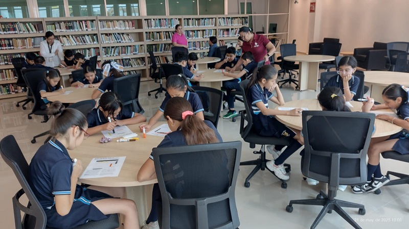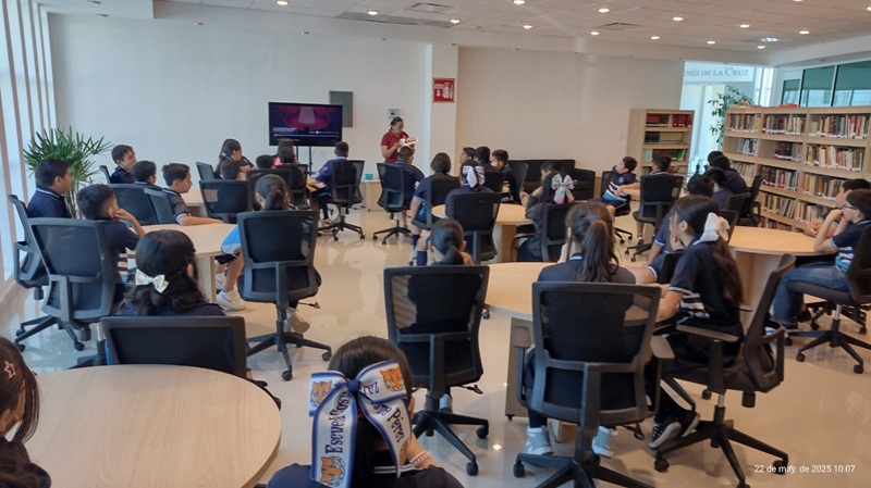 NUEVO LAREDO, TAMPS. Alumnos de la escuela primaria “Cosme Pérez” decidieron disfrutar su recreo en la Infoteca “Sor Juana Inés de la Cruz”, donde se divirtieron y aprendieron a través de juegos lúdicos, lecturas, proyección de cortometrajes animados y el desarrollo de sus habilidades creatividad.