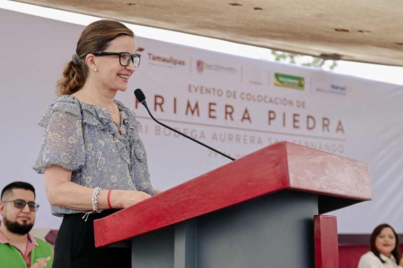 SAN FERNANDO, TAMPS. Como resultado del entorno de confianza para la inversión comercial en Tamaulipas, la secretaria de Economía, Ninfa Cantú Deándar junto con la presidenta municipal de San Fernando, Verónica Aguirre y Rodrigo Flores Amezcua, director de Relaciones Institucionales de Walmart de México encabezaron la ceremonia de colocación de la primera piedra para la construcción de la tienda Mi Bodega Aurrerá que representa una inversión de 50 millones de pesos.