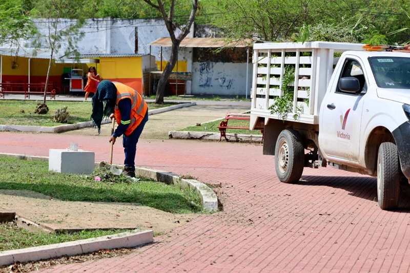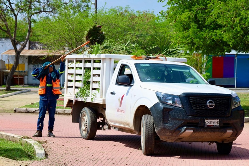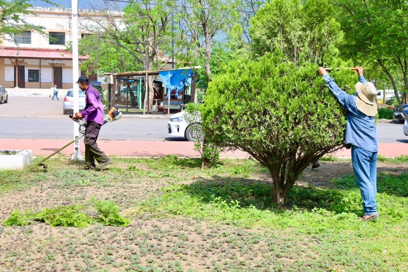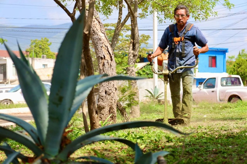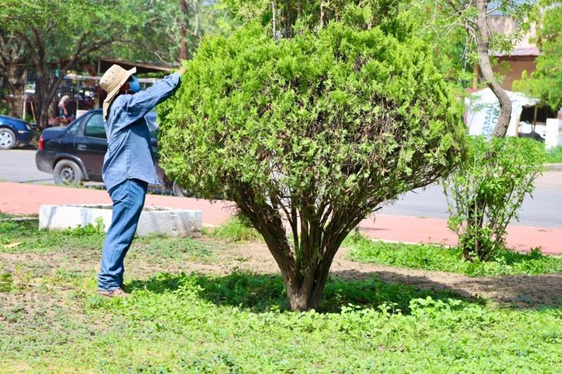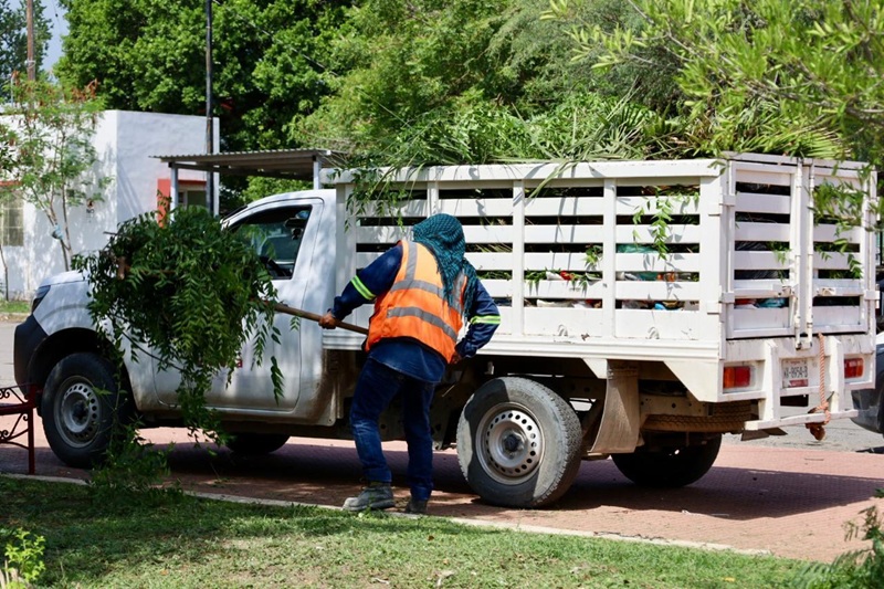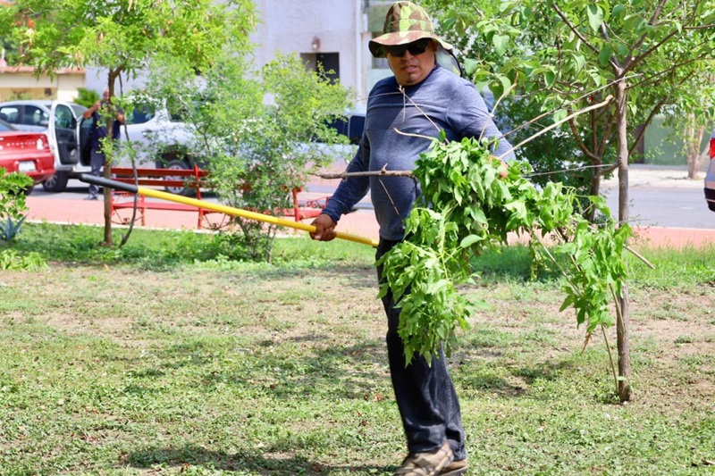 Con acciones de poda de árboles y palmas, limpieza de parques y jardines, personal de la Secretaría de Servicios Públicos del Municipio, inició en la plaza pública Héroes de la Independencia, y continuó en avenidas 20 de Noviembre, José Sulaimán, Central y Tamaulipas.