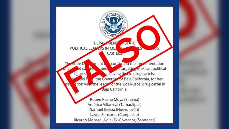 AGENCIAS. Las embajadas de EUA en México y de México en Estados Unidos lanzaron este 03 de junio un comunicado donde desmintieron que el Departamento de Estado de Estados Unidos haya sancionado a gobernadores de México por supuestos vínculos con cárteles, como circuló falsamente en redes sociales.